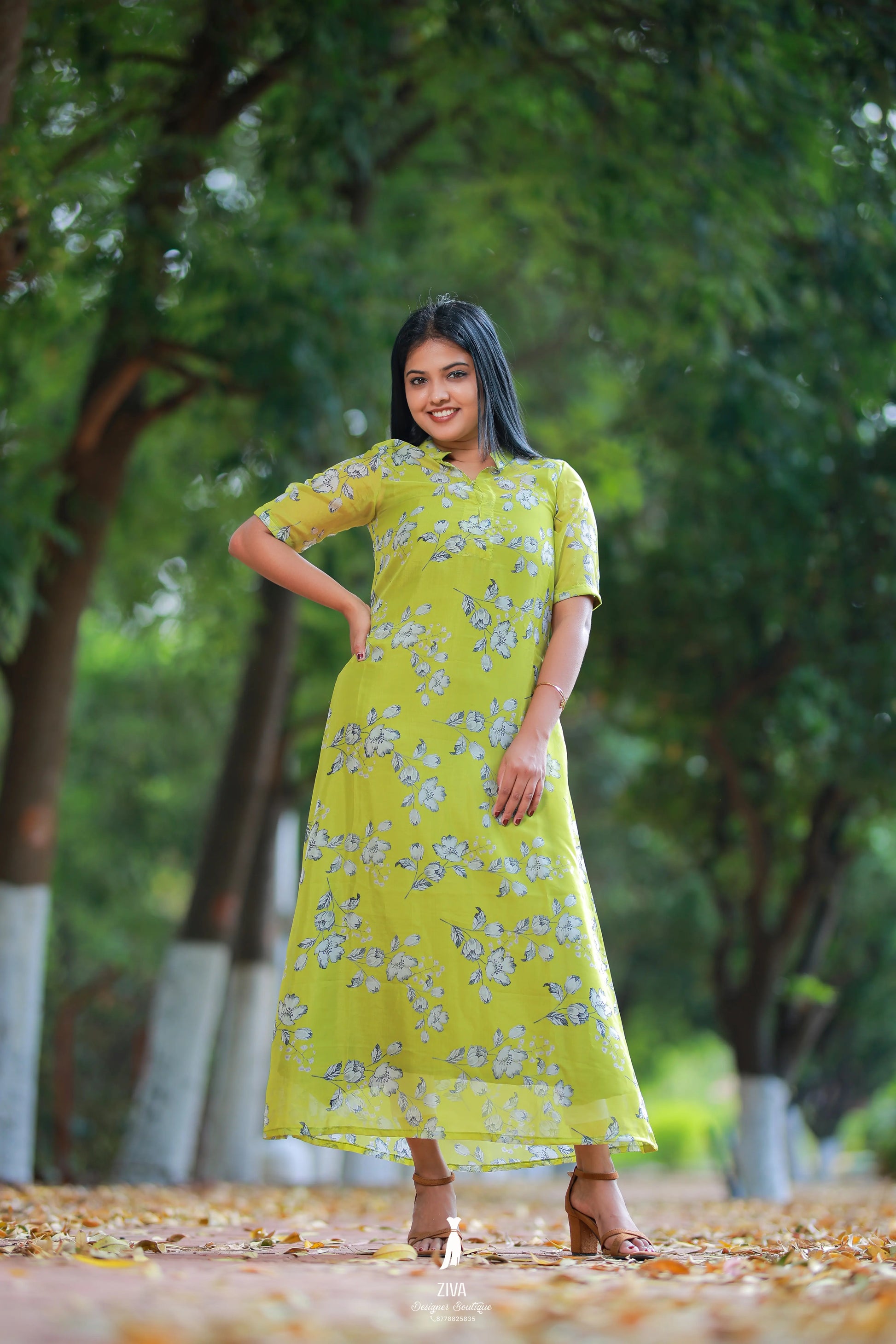 Step into effortless elegance with our stunning Green Printed Organza A-Line Dress. Crafted from luxurious organza fabric, this dress features a delicate all-over print that captures nature’s charm. The soft green hue exudes freshness and grace, making it perfect for any special occasion.