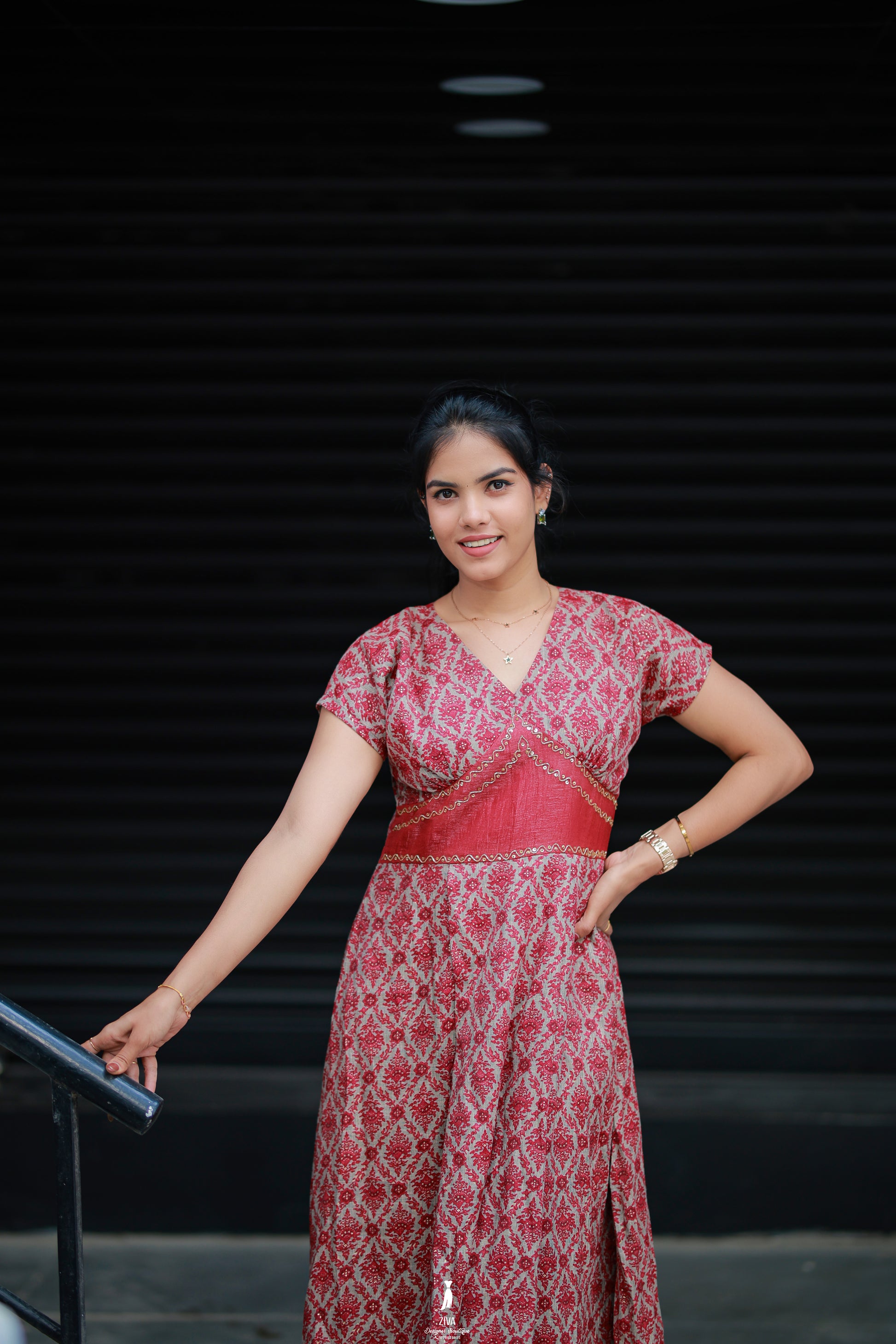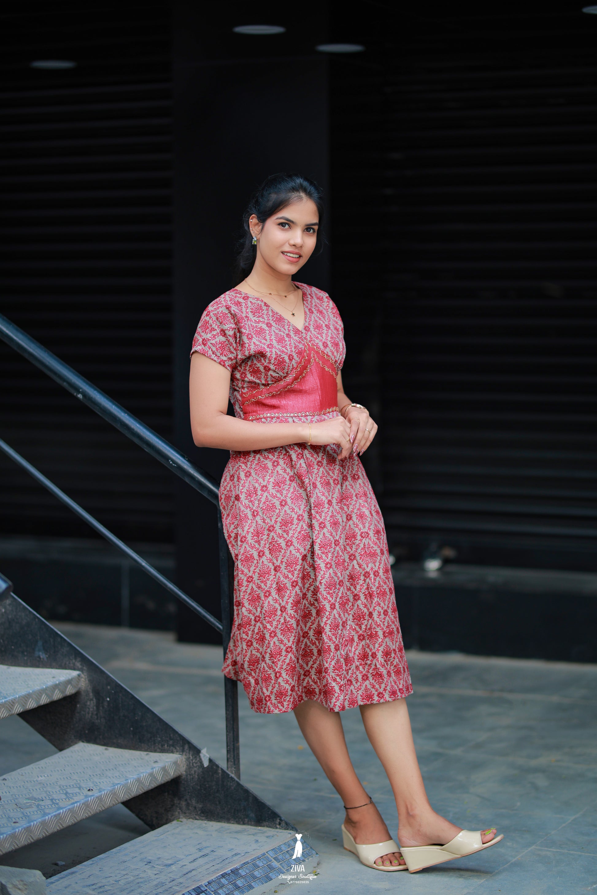 Elevate your ethnic wardrobe with this exquisite red printed kurti dress, designed with a perfect balance of tradition and contemporary elegance. Crafted from premium breathable fabric, it features an all-over intricate pattern highlighted with delicate golden embroidery at the waistline for added refinement.