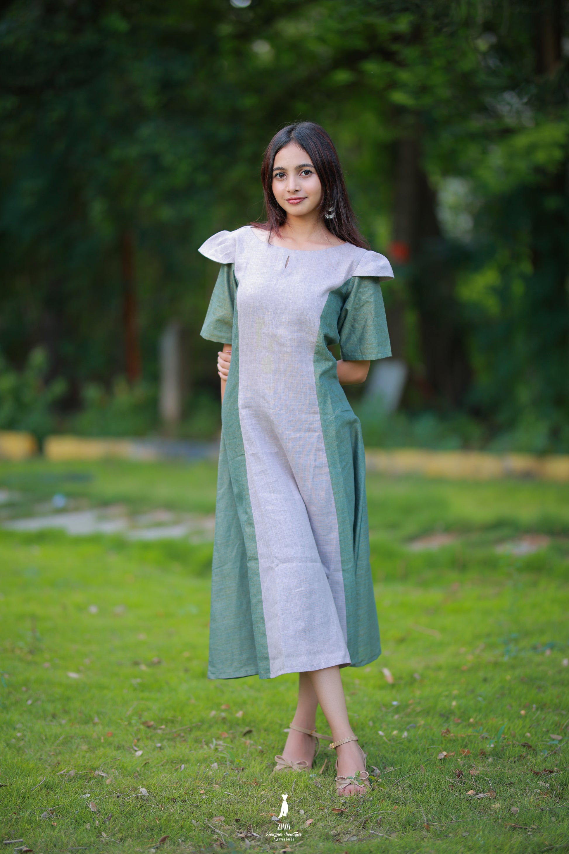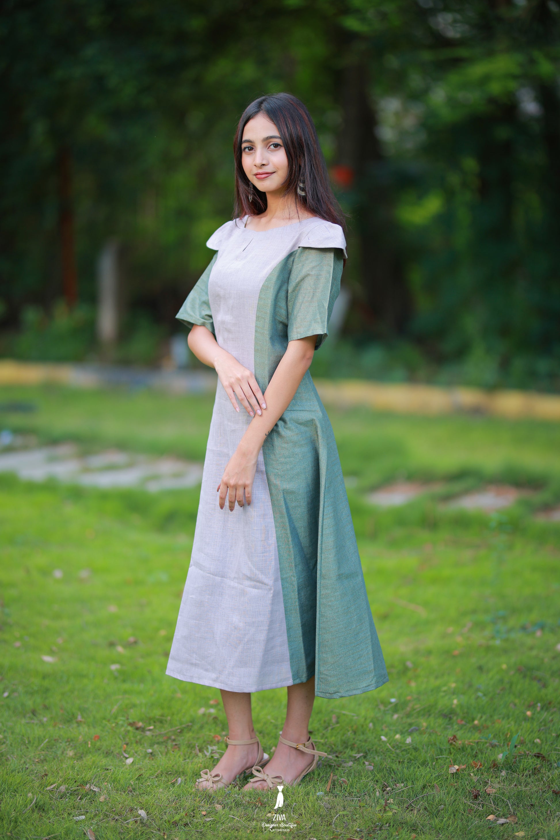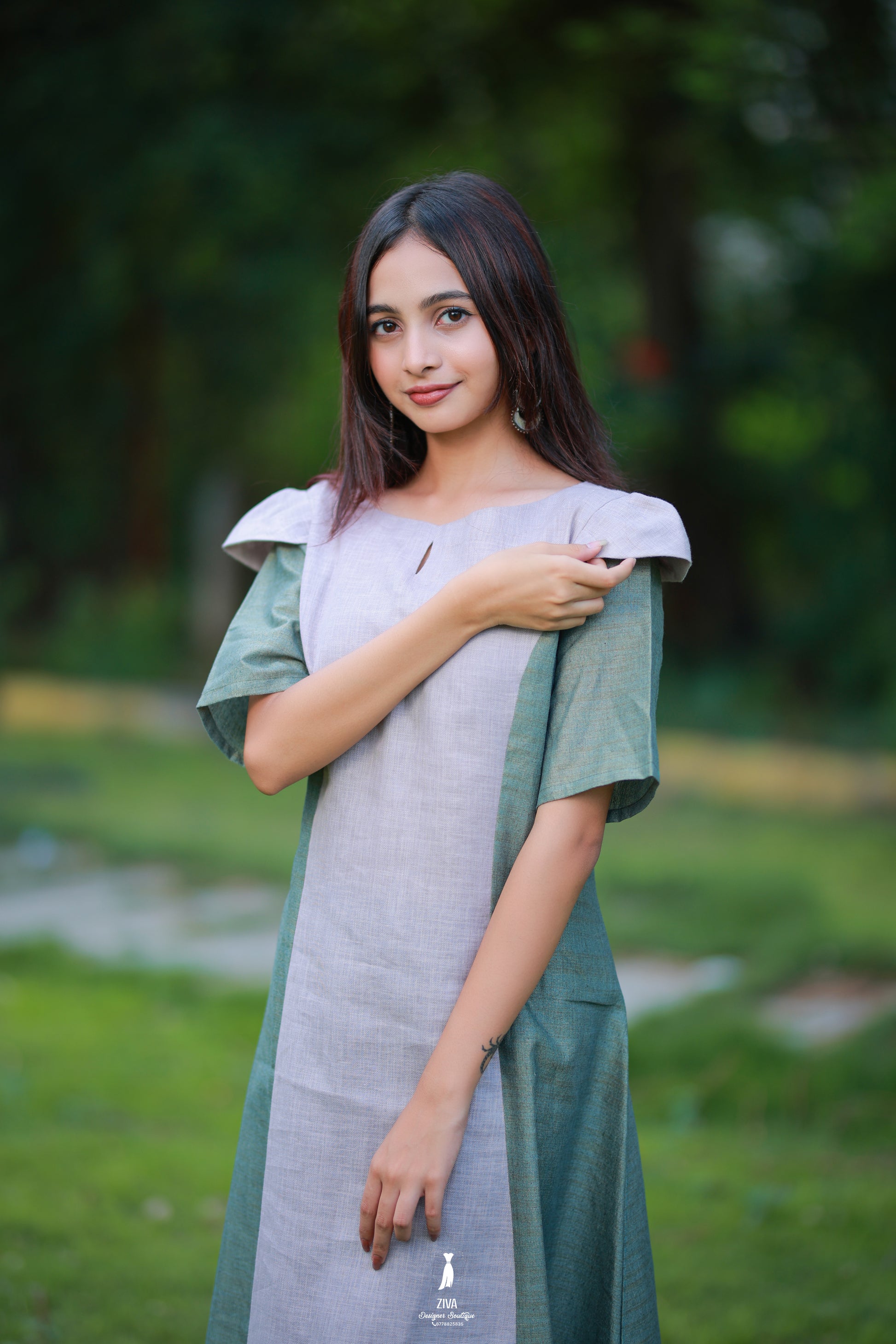 Make a subtle yet striking statement with this Sage Green & Grey Colorblock Flared Kurti Dress—a perfect fusion of modern design and traditional elegance. Crafted in soft, breathable fabric, this kurti dress features a graceful flared silhouette that flatters every body type, while the unique sage green and grey colorblock pattern adds a contemporary twist.